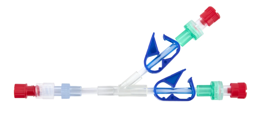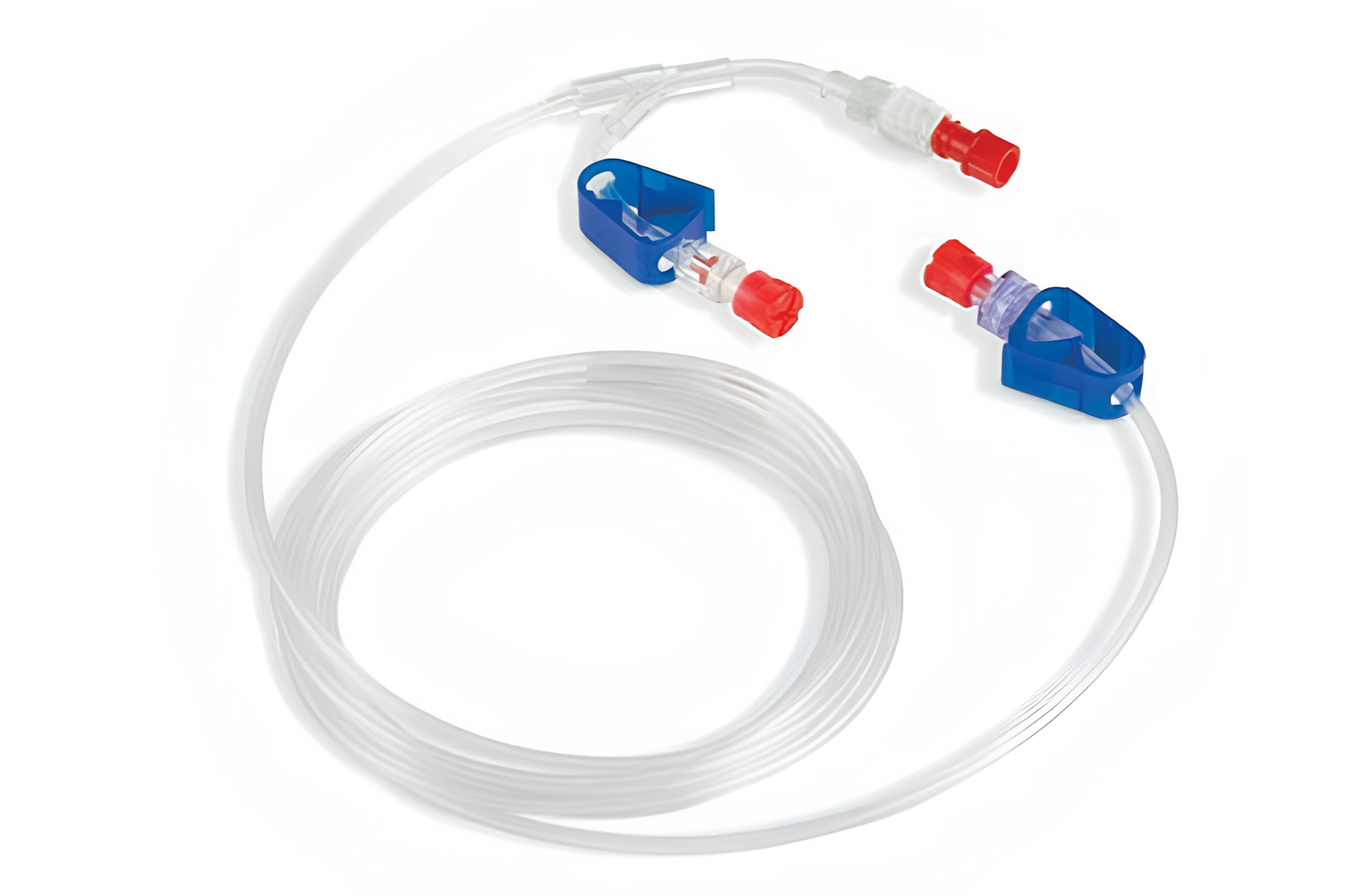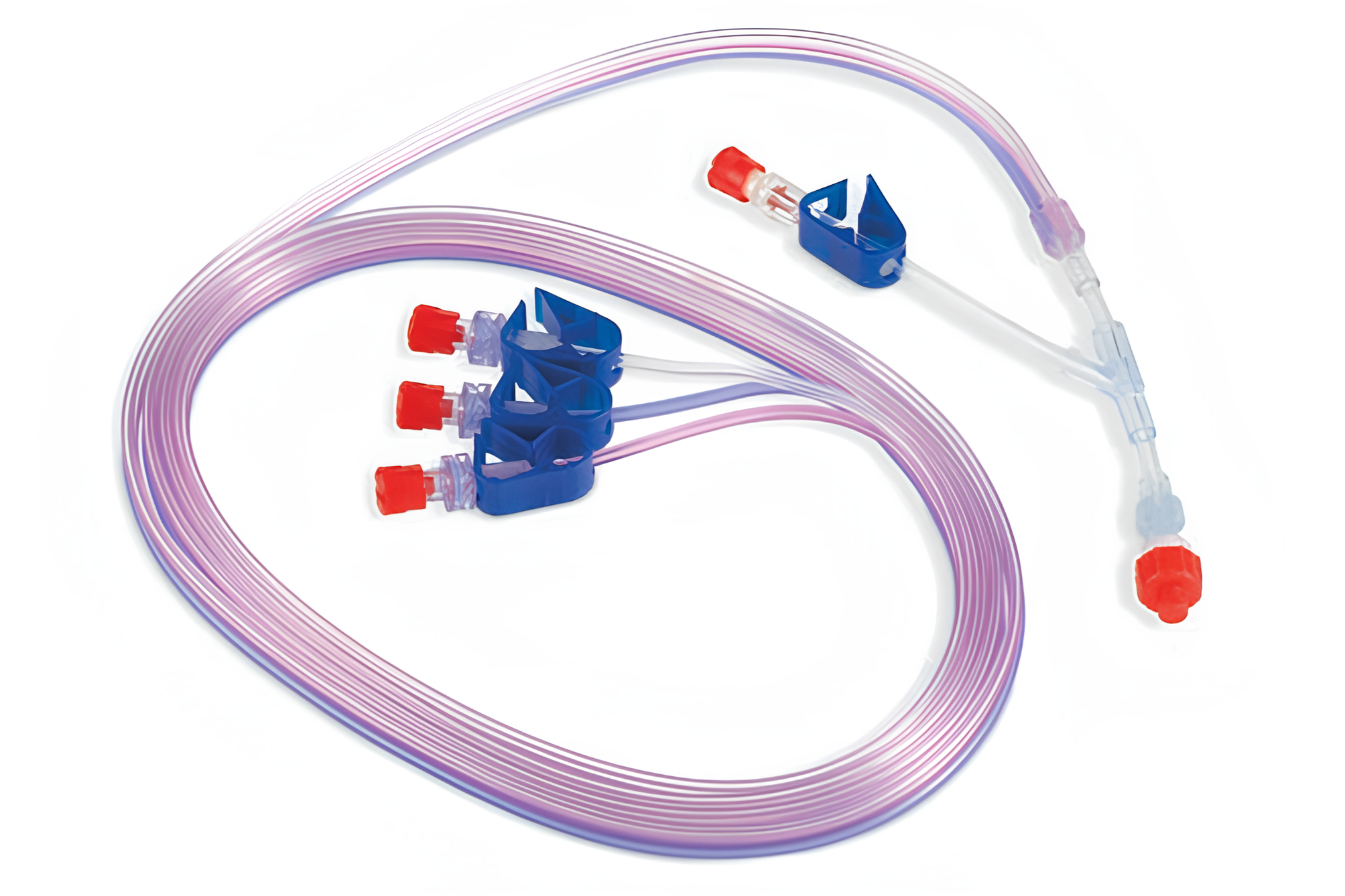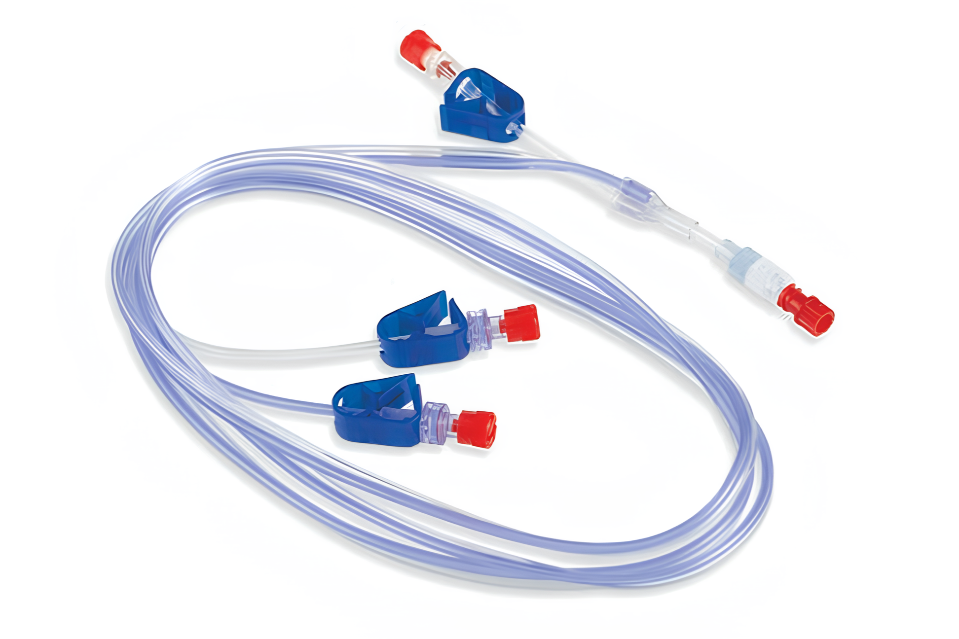Conjoined tubing on double and triple infusion lines prevents entanglement. This design simplifies the setup and management of infusion lines during procedures, making it easier for healthcare professionals to work efficiently.
